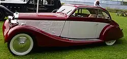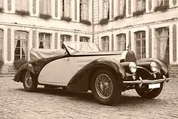 In 1924 the company created a subsidiary called Autobineau to specialise in sedan and limousine car bodies produced in greater volumes and in a slightly more standardised format than was associated with the upmarket coach builders. During the 1920s Letourneur et Marchand became the main supplier of car bodies for Delage. The business also built bodies for manufacturers such as Unic. In just a few years, Autobineau produced 2,000 more or less identical bodies for the Delage DI. In addition, there were still individual bodies that were created at the customer's request. Since the 1930s, Letourneur et Marchand worked primarily for Delage. In 1936, Delage introduced their D8-120 chassis, which formed the basis for the Aérosport, manufactured between 1936 and 1939, for which both Letourneur and Autobineau produced a number of bodies.[1] The company also dressed chassis from Buick, Duesenberg,[2] Renault, Delahaye, Panhard, Rolls-Royce and Bugatti. By the outbreak of the Second World War, at least 19 bodies had been built for the Bugatti Type 57. From 1930 onwards, the design of the bodywork was predominantly in the hands of Marcel Letourneur, a son of the company's founder, who had received artistic training and worked for several British coachbuilding companies in the 1920s. Marcel Letourneur often created aerodynamically designed bodies that had a low beltline and did without a central vehicle pillar in order to make the roof structure appear lighter. An outstanding example of this design style was Marcel Letourneur's Coupé Panoramique from 1937, which was built on a Delage D6 chassis.[3] The company also manufactured similar bodies for chassis from other manufacturers, including Lincoln.