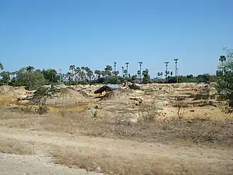 Artisanal mines near Letpadaung Mountain. Many of the people who work these mines were displaced by the mine project. They process ore mined by Wanbao | |