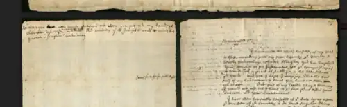 According to Jantz, the original manuscript of the letter was sold by the widow of the collector who once owned it to the Boston College and David Levin had reaffirmed the authenticity and "double checked with some of the experts who had verified Mather's handwriting at the time of acquisition..." and found the paper "of the right age." Neither Jantz nor Levin seem to have noted that the letter could be further verified by a line of handwriting by Stoughton (the AAS typescript also contains this line at the end, copied with a pen) a paraphrased version of this opening line was reprinted by Mather in his book some weeks later.[27] Stacy Schiff, writing thirty years after Jantz and Levin, seems to be the first person on record to take notice of this fact, "Stoughton began his fulsome reply on the verso."