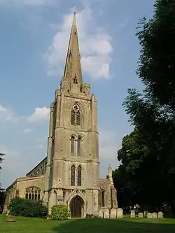 Leverington - an estate linked with a man called Leofhere.[3] The 13th-century church of St Leonard is a Grade I listed building,[4] noted for its spire, restored 15th-century, a Tree of Jesse window, and carved font. Rectors of the parish have included John Ailleston, Richard Reynolds, James Nasmith, Thomas Yale and John Jenkinson. Dramatist Edmund John Eyre (1767–1816), was a son of a rector.[5]
