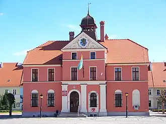 The Lewin Brzeski Town Hall seen from the north-west of the Market Square. -