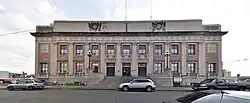 A fire in a first floor storage room used for waste paper began on the evening of September 25, 1931. Considered to be caused by a discarded cigarette or spontaneous combustion, no damage was reported and inmates in the jail cells were not harmed; the courthouse was ventilated by the city's fire department due to the excessive smoke.[92] In July 1934 during a mortgage foreclosure auction, a common event held at the courthouse during the Great Depression, a crowd gathered to protest the sale of a farm and the eviction of its owners. The assembly grew vocal and threatening enough that several law officers and the purchaser of the deed were hastily removed for their safety. Despite the growing crowd, no riot occurred.[93] Three members of the crowd were charged with inciting a riot and the case was heard at the courthouse at the end of the year.[94]