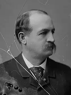When Republican President Benjamin Harrison took office, he desired to replace Democratic governor C. Meyer Zulick with a member of his own political party. Newspaper reports indicated fifteen to sixteen serious candidates were considered for the post, among them being former governor Anson P.K. Safford and Territorial Delegate Curtis C. Bean. Wolfley applied for the position directly to Harrison two days after the presidential inauguration. The application letter included information on Wolfley's war record, his six years of living in the territory, and a reminder that the Republican platform called for territorial officials to be drawn from the territory. Wolfley supporters included Generals William T. Sherman, Nelson A. Miles, and John Schofield along with U.S. senator John Sherman, Russell A. Alger, James G. Blaine, and Secretary of the Interior John W. Noble.[5] Opposition to his nomination came from U.S. senator J. Donald Cameron of Pennsylvania. The senator's nephew, Brewster Cameron of the San Rafael Cattle Company, had a previous billing dispute with Wolfley over a surveying job the nominee had done for the Arizona cattleman.[6] Despite the opposition, Wolfley received unanimous confirmation from the U.S. Senate on March 28 and was sworn in as Governor of Arizona Territory on April 8, 1889.[7]