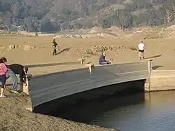 The photo at right shows a bridge across Black Creek, built in 1926. The bridge, along with a few house foundations from the towns of Lexington and Alma, were exposed in 2008 when the reservoir was drained for dam maintenance. These historical structures have been exposed only three or four times since the dam was constructed.[12]