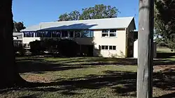 The school building has two classrooms used as one, an office, store and staff area. It is a high set timber building with gabled corrugated iron roof. The original classroom is lined with tongue and groove boards, and the newer areas are lined with fibrous cement sheet. To the west is an open verandah with racks for the children's school bags. There are timber stairs to the front and rear. To the east is a small landing with the original school bell. Underneath is mostly open with remnants of old school furniture.[1]