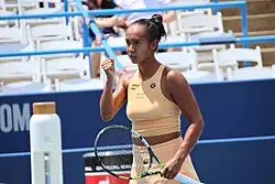 Leylah Annie Fernandez (born 6 September 2002) is a Canadian professional tennis player. She has been ranked as high as No. 13 by the WTA on 8 August 2022. Her best doubles ranking is world No. 17, achieved on 23 October 2023. Fernandez won her first WTA Tour title at the 2021 Monterrey Open, and has won four WTA singles titles overall. As a 19-year-old, she finished runner-up at the 2021 US Open to fellow teenager Emma Raducanu, defeating three top-5 players en route to the final, including defending champion Naomi Osaka.