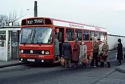 The first Leyland National was delivered in March 1972 to Cumberland Motor Services, registered ERM 35K, and the bus quickly became a common sight on British roads.[9] Although developed for the National Bus Company (whose subsidiaries effectively had to purchase it), it was also bought by the Scottish Bus Group subsidiaries,[10] London Transport,[11][3] SELNEC[12] and British Airways[13] (which chose the 3 door version) and other operators.