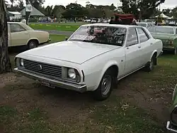 The Leyland P76 is a large car that was produced by Leyland Australia, the Australian subsidiary of British Leyland. Featuring what was described at the time as the "standard Australian wheelbase of 111 inches",[4] it was intended to provide the company with a genuine rival to large local models like the Ford Falcon, the Holden Kingswood, and the Chrysler Valiant. But, due to the first real fuel crisis and demand far exceeding the supply, Leyland rushed the assembly process with the first of the P76s to come off the assembly line, resulting in poor build quality and some reliability problems. The combination of the rushed assembly, fuel crisis and strikes at the component manufacturers' factories, resulted in the Leyland P76 being labelled a lemon, despite being named Wheels Car of the Year in 1973. By 1974, sales of the P76 had slumped and BMC decided to end the production of the P76. Although the P76 has been labelled a lemon in Australian motoring history, it is viewed by some as an iconic Australian car and has a loyal following.