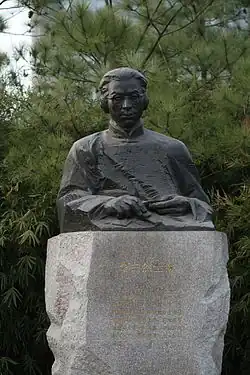Li Bai's life was made into the film The Eternal Wave, in which he is named Li Xia and portrayed by the famous actor Sun Daolin. Some of his remains were deposited in the National Museum of China. The site of his death, now in Century Park, has a bust statue.[2] Beijing University of Posts and Telecommunications also has his sculpture on campus.