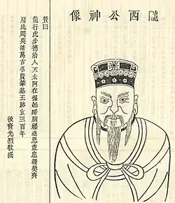 Li Gao or Li Hao (Chinese: 李暠; 351–417), courtesy name Xuansheng (玄盛), nickname Changsheng (長生), also known by his posthumous name as the Prince Wuzhao of Western Liang (西涼武昭王), was the founding duke of the Chinese Western Liang dynasty during the Sixteen Kingdoms period. While he claimed only the title of duke during his reign, he was posthumously honored with the princely title. He was initially a Northern Liang official, but in 400, he seceded from Northern Liang's prince Duan Ye's rule and established his own independent dynasty. While his state only lasted for 21 years, his descendants would remain key officials and nobles throughout the Northern Wei, Western Wei, Northern Zhou, and Sui dynasties, and one of them, Li Yuan, would found the Tang dynasty in 618. He was posthumously honored by the Tang dynasty as Emperor Xingsheng (興聖皇帝).