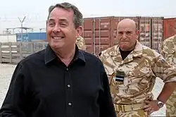 Fox voted for the 2003 invasion of Iraq. As Shadow Defence Secretary he supported the Government's position of maintaining British troops in Iraq until the security situation allowed for a withdrawal of troops but was critical of the lack of post-invasion planning and poor equipment initially provided to British troops.[16] He supported the idea of the American Surgel, believing that it was successful, and visited Iraq several times as Shadow Defence Secretary.[17]