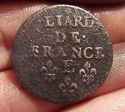 The liard was also a French coin, worth three deniers, which appeared under Louis XIV and was the smallest in use in the period prior to the French Revolution.