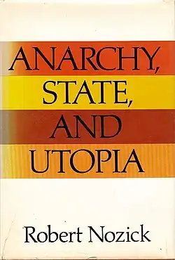 As a result of the split, a small group of Americans led by David Nolan and a few friends formed the Libertarian Party in 1971.[125] Attracting former Democrats, Republicans and independents, it has run a presidential candidate every election year since 1972. Over the years, dozens of libertarian political parties have been formed worldwide. Educational organizations like the Center for Libertarian Studies and the Cato Institute were formed in the 1970s and others have been created since then.[126] Philosophical libertarianism gained a significant measure of recognition in academia with the publication in 1974 of Harvard University professor Robert Nozick's Anarchy, State, and Utopia, a response to John Rawls's A Theory of Justice (1971). The book proposed a minimal state on the grounds that it was an inevitable phenomenon that could arise without violating individual rights.[19] The book won a National Book Award in 1975.[127] According to libertarian essayist Roy Childs, "Nozick's Anarchy, State, and Utopia single-handedly established the legitimacy of libertarianism as a political theory in the world of academia".[128]