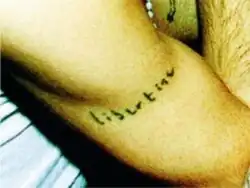 They went to the US to promote themselves and work on new material. While in New York City around May 2003, they recorded the Babyshambles Sessions, where they recorded versions of current and future Libertines and Babyshambles releases such as "Last Post on the Bugle", "Albion", "In Love With a Feeling," and "Side of the Road". As a mark of their commitment to the band, Doherty and Barât both got tattoos of the word "Libertine" on their arms, written in Carl's handwriting. The prelude to this moment is heard on "The Good Old Days" from the Babyshambles Sessions, in which, after the lyric, "A list of things we said we'd do tomorrow," Doherty yells 'Get a tattoo!' However, Barât became increasingly exasperated with the people with whom Doherty was associating and the drugs they brought. Barât quit the sessions in disgust and Doherty finished recording alone. The sessions were given to Helen Hsu, a fan, who as Doherty allegedly instructed, put them out for free on the internet.