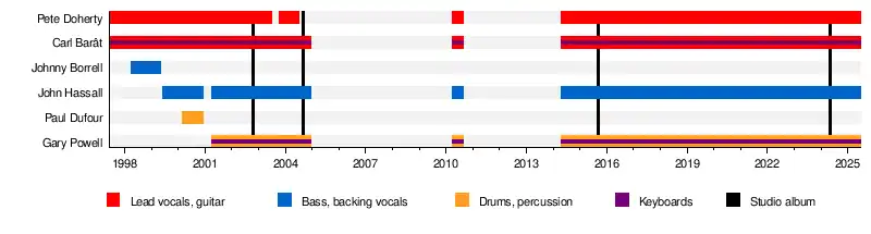 - Pete Doherty – lead vocals, guitar, harmonica (1997–2003, 2003–2004, 2010, 2014–present)
