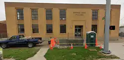 The entrance to the station is located near a former Warner Bros Pictures film distribution center in Cincinnati, Ohio with caution tape bordered over it.