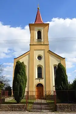 The Evangelical church was built in 1852–1855. It was the first Evangelical church in the Czech Republic with a tower and bells.[6]