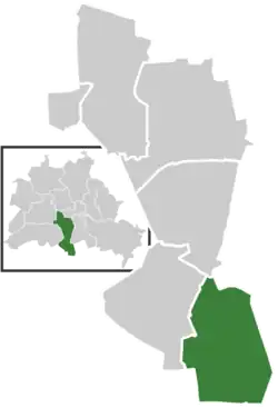 Located in the southern suburb of Berlin, it is one of the southernmost areas of the city, largely bounded by the Brandenburger municipalities of Schönefeld (Dahme-Spreewald district), Blankenfelde-Mahlow and Großbeeren (both in Teltow-Fläming district). It borders with the Berliner localities of Marienfelde, Mariendorf and Buckow (this one in the district of Neukölln).