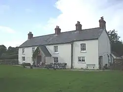 The main landmark is the Lidmore Farm, an early 18th-century Grade II listed building.[2] It is a "two-storey, whitewashed rubble stone farmhouse" with a "Welsh slate roof with four corniced brick ridges and end stacks. There are two wings, the narrower downhill and set back at each elevation. The main frontage faces the garden and this has a three-window range of sashes to the left main unit: two to the left (plus one smaller to ground floor) and one to the right of a gabled porch which is of rock-faced stone with brick dressings, including moulded brick cambered arch, flag floor and boarded door."[3] Refurbished in the 19th century, Lidmore Farmhouse became a listed building on 10 October 2002.[3]