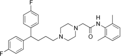 - ^ a b Schaper WK, Xhoneux R, Jageneau AH, Janssen PA (May 1966). "The cardiovascular pharmacology of lidoflazine, a long-acting coronary vasodilator". The Journal of Pharmacology and Experimental Therapeutics. 152 (2): 265–274. doi:10.1016/S0022-3565(25)27319-0. PMID 5944369.