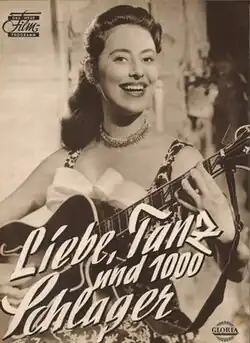 Love, Dance and a Thousand Songs (German: Liebe, Tanz und 1000 Schlager) is a 1955 West German musical comedy film directed by Paul Martin and starring Caterina Valente, Peter Alexander and Rudolf Platte.[1] It is a revue film, showcasing a number of different performers.[2] It was filmed at the Spandau Studios in West Berlin and on location around Mittenwald in Bavaria. The film's sets were designed by the art directors Hans Jürgen Kiebach and Gabriel Pellon.