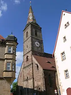 Liebfrauenmünster in Wolframs-Eschenbach is a church in Wolframs-Eschenbach, Bavaria, Germany.[1] It was built in 1310.[2] The altar of the Rosary in the church was made in 1510 probably by disciples of Veit Stoß.