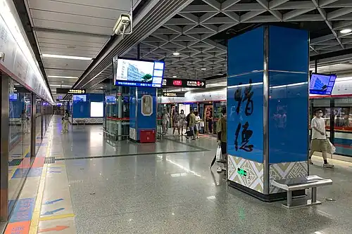 Liede Station (simplified Chinese: 猎德站; traditional Chinese: 獵德站; Cantonese Yale: Lihpdāk Jaahm) is a station on Line 5 of the Guangzhou Metro.[1] It is located under the junction of Huacheng Avenue (花城大道) and Liede Avenue (猎德大道), in Liede, Tianhe District, near the Guangzhou International Finance Center in Zhujiang New Town.[2][3][4] The station opened on 28 December 2009.[5]