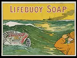 Lifebuoy was introduced by Lever Brothers in 1895 in the United Kingdom. Originally a carbolic soap containing phenol, different varieties were later introduced without the medicinal carbolic smell, such as the coral-coloured Lifebuoy during the late 1950s and Lifebuoy Minty Refresher in 1966.[2] Lifebuoy was one of the most popular soaps in the United States from approximately 1923 to the mid-'50s,[3] when perfumed soaps took over the market. It was North America's best-selling medicated/health soap until roughly 1951. It was well known for its red and yellow packaging, red color, octagonal shape, and carbolic aroma. Due to declining sales sometime in 1951 or 1952, Lever Bros. experimented with adding perfumes to the soap and made the changes permanent in 1954. Earlier experiments in 1936, 1938, 1939, and 1940 also added an artificial scent to the soap but generally lasted only one batch. Sales, however, continued to decline until 2006, when Lifebuoy was officially completely pulled from the American market. Lifebuoy's popularity reached its peak between 1932 and 1948. After World War II, when more materials were available, and rationing was over, other soaps began to take hold of the market. Its popularity waned steadily through the 1950s. It saw a popularity surge in the mid/late 1960s, which would last through 1973. This was partly caused by the introduction and success of Lifebuoy White in the American market. After this decline, the Lifebuoy brand was seen less and less in the American market. It was pulled from American shelves starting in 2003 and was completely phased out of the American market by 2006. Sometime in 2008 or 2009, Unilever released Lifebuoy Classic, a modern soap with retro packaging and a medicated scent intended to be similar to that of the 1950s product, as a tie-in novelty product sold through the official A Christmas Story website.