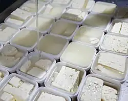 Lighvan (Persian: پنیر لیقوان, Azerbaijani: لیقوان پئندیری) is a sour, hole filled brined curd cheese traditionally made from sheep's milk in Liqvan, a village in East Azerbaijan, Iran.[1]
