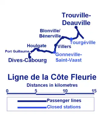 The Ligne de la Côte Fleurie[a] (French pronunciation: [liɲ də la kot flœʁi]) is a railway line serving the towns of the Côte Fleurie, Calvados, France.