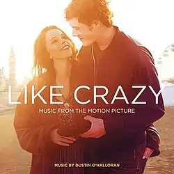 Like Crazy: Music from the Motion Picture is the soundtrack to the 2011 film Like Crazy, released by Relativity Music Group on October 26, 2011. The album consisted of songs by Paul Simon, M83, Stars, The Mary Onettes and Figurine.[1] An album containing the original score composed by pianist Dustin O'Halloran was released on the same date.