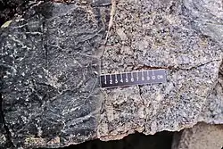 The very center of the interior contact aureole consists of migmatite, which is often observed as a mica-rich gneiss.[9]