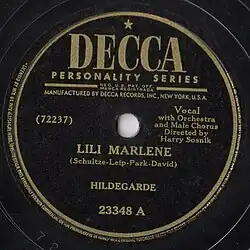 - ^ ""Lili Marlene" Decca Re-issue". Discogs. Retrieved 20 June 2014.