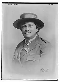 After serving at the correction facility for two years, Barker resigned from her post after being recruited to join Britain's war effort during World War I.[8] Her first role was as Commandant of the Women's Legion cooking section,[7] where she organised the training of army cooks.[9] She was then appointed Chief Welfare Superintendent of the Royal Arsenal, Woolwich,[10] overseeing 30,000 women munitions workers.[11] Her workers were surrounded by dangerous chemicals and TNT,[12] but Barker organised canteens, first aid provision, recreational activities and rest rooms for the women.[7] She was appointed CBE in 1917.[1]