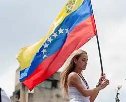 Lilian Adriana Tintori Parra (born 5 May 1978) is a Venezuelan activist, athlete, and television and radio host. Tintori is married to Leopoldo López, a Venezuelan politician sentenced in 2015 to nearly 14 years in prison for inciting violence during street protests the year before.[1] She has also led groups who have opposed the government of Venezuelan President Nicolás Maduro.[2]