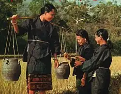 The 3rd century Nanzhou Yiwuzhi mentioned bandits called Lǐ (俚) who lived south of Guangzhou in the five commanderies: Cangwu, Yulin, Hepu, Ningpu and Gaoliang. They lived in villages with no walls and took refuge in the mountains and narrow passes. They did not have commanders or lords.[11][12] The Liu Song dynasty (420–479) set up a post called "Protector the Western Rivers" specifically to attack the Li and Lao people. After 471, the holder of that post encroached on the territory of the Li and Lao people. An army under the command of Li Sidao, the governor of Jinkang (close to modern Wuzhou), attacked the Li under the Protector's orders. During the 6th century, the Li people were united under the rule of Lady Xian, a hereditary leader who convinced tribal leaders to obey her.[13] In the early 6th century, the Liang dynasty (502–557) waged war on the Li people, calling it the "pacification of the Li dong". In 503, governor Xun Fei of the Yulin Commandery (east central Guangxi) was killed in battle while fighting the Li. Between 523 and 545, there was open warfare with the Li and a Li commander named Chen Wenche was defeated.[14] In the Tang dynasty, the Li people of northern Vietnam were assigned a separate administrative status among the populace of the Annan protectorate, only paying half the taxes of ordinary subjects.[15] By the 11th century, records no longer mention the Li on the mainland.[16]