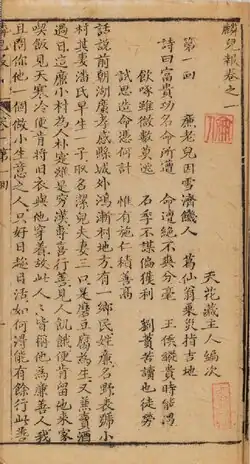 Lin er bao or Lin'er bao[1] (traditional Chinese: 麟兒報; simplified Chinese: 麟儿报), also translated into English as Son of Good Fortune,[2] is a Chinese romantic novel of the 17th-century written by an anonymous writer.[3] The novel is often categorized as one of the caizi jiaren novels that were massively popular during the late Ming and early Qing eras.[2]