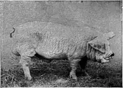 The Lincolnshire Curly Coat or Lincolnshire Curly-coated, also known as the Baston Pig, is an extinct British breed of domestic pig.[1]: 359 It originated in, and was named for, the county of Lincolnshire, in the East Midlands. Like many other traditional pig breeds, it became rare after the Second World War. By 1970, it had disappeared.[2]: 565 An older, still existing breed of similar looking pigs is the Hungarian Mangalica.