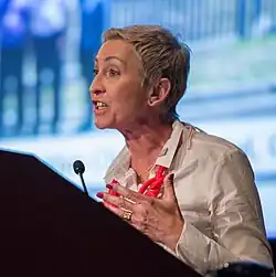 In 2016 she was elected President of the International AIDS Society.[21] She gave the opening address at the International AIDS Society Conference in Paris, where she spoke about new prevention options such as Pre-exposure prophylaxis.[22] In 2018 she was elected to the board of the International AIDS Vaccine Initiative.[14] She is concerned about Donald Trump undermining the global HIV response.[23][24] She has been a keynote speaker at World AIDS Day.[25]