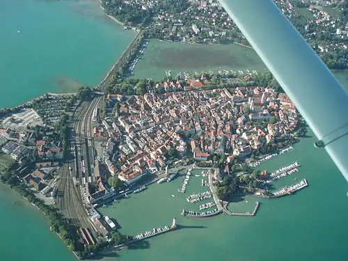 Lindau-Insel station (German: Bahnhof Lindau-Insel, lit.'Lindau Island'), named Lindau Stadt (lit.'Lindau City') until 15 May 1936 and then Lindau Hauptbahnhof (lit.'Lindau Main Station') until 12 December 2020, is the largest railway station in the city of Lindau in the German state of Bavaria. It is a terminal station and located on the island of Lindau, Lake Constance (Bodensee).