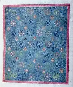 The lower or back cover is older than the text and presumably added from another book, perhaps around the time the text was written. It was perhaps originally a front cover. It is the only largely intact example of a very early Insular metal bookcover to survive, although we know from documentary records that famous works like the Book of Kells and the Lindisfarne Gospels had them. A few Irish cumdachs or metal book-shrines or reliquaries for books have survived, which show broadly comparable styles, and use crosses as the central feature of their designs. The style is close to that of the other main survival of essentially Anglo-Saxon work executed on the Continent, the Tassilo Chalice, and also a number of works executed by local workshops in several parts of Europe.[3] However, the St Cuthbert Gospel (British Library), a decorated leather binding thought to date from around 700 to 730, is the earliest intact European binding.[4]