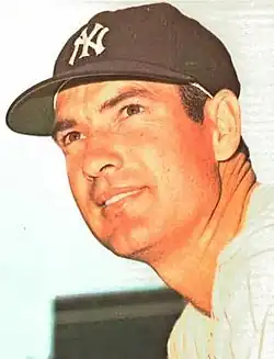 The Giants traded him to the Yankees on July 12, 1968 for Bill Monbouquette.[10] He finished the 1968 season 4–1 with a 1.75 ERA and 10 saves in 24 games for the fifth place Yankees.[31] In 1969, he pitched 51 games in relief with a 5–6 record, 3.55 ERA and only five saves for the Yankees.[32]