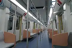 Line 17 uses 38 6-carriages A-class trains built by Changchun Railway Vehicles or Shanghai Electric. Unlike most Shanghai Metro lines, this line is operated using third rail electrification. The trains have an operating speed of 100 km/h (62 mph).[19][20] Trains are stored at Xujing depot, located between Xuying Road and Xujingbeicheng, as well as Zhujiajiao yard, just west of Zhujiajiao.[21] Trains have a capacity of about 1,860 people.