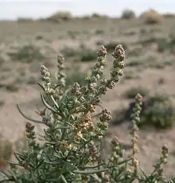 Oligomeris linifolia is a species of flowering plant in the small family Resedaceae known by the common name lineleaf whitepuff. It is native to parts of the Middle East and the Indian subcontinent, as well as southern Europe and North Africa, and the southwestern United States and northern Mexico. It grows in many types of habitat, including disturbed areas and saline soils, in deserts, plains, coastline, and other places. It is a fleshy annual plant, producing several erect, ribbed stems 35 to 45 centimeters in maximum height.