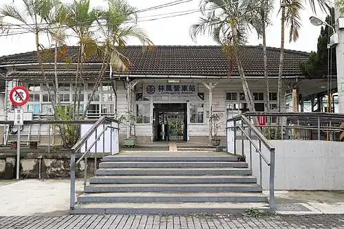 Linfengying railway station (Chinese: 林鳳營車站; pinyin: Línfèngyíng Chēzhàn) is a railway station located in Lioujia District, Tainan, Taiwan. It is located on the West Coast line and is operated by Taiwan Railways.