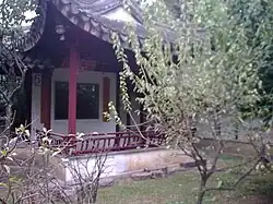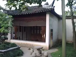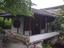 Named after a line by Zhu Shi (Song dynasty), "The water is imbued with green, forests have become more red...".[2] The name alludes to the numerous pines added to the garden during the second phase of construction. The typical farmhouse design typology, three bay with flat eves and full gables, of the villa reinforces the idea of a rustic retreat. |