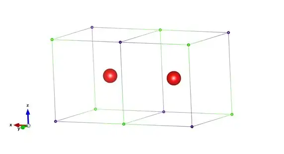 In this case, each spin set is the same but there is no correlation between them, giving rise to a cubic arrangement of the electrons. As the average distance between the electrons is shorter than in the ground state case, this disposition of the electrons thus results in a greater net magnitude of the inter-electronic repulsion energy as compared to the ground state. Hence, the above structure corresponds to the first excited state (1Δg state) of O2. If one further increases the degree of inter-electronic repulsions by forcing the electrons into coincident pairs, the electronic structure shown below is generated.[2]