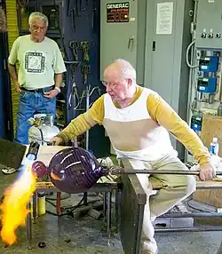Lino Tagliapietra (born 1934) is an Italian glass artist originally from Venice, who has also worked extensively in the United States. As a teacher and mentor, he has played a key role in the international exchange of glassblowing processes and techniques between the principal American centers and his native Murano, "but his influence is also apparent in China, Japan, and Australia—and filters far beyond any political or geographic boundaries."[1]