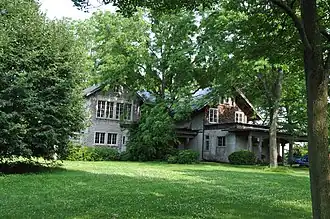 When his father died, "Harry" assisted in management of the lumber company but preferred other pursuits, including real estate projects in the Midwest and acting as Vice-President of the New York State Board of Charities.[6] With the inheritance he also scouted out a farm property in Livingston County, New York, which proved suitable for the establishment of a summer estate, which was a popular investment for those of means. The property was purchased in 1901 and construction began immediately. Harry worked with Green and Wicks, a prominent Buffalo firm, to design the summer house, and hired Boston landscape architect Thomas Fox to plan out the surrounding roads and garden areas between about 1901-1910. The results still stand today, with some alterations. The gardens were recognized with the Historic Landscape Award from the Landmark Society of Western New York in 2015.[7]