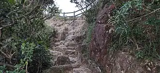 A few parts of the trail are rocky and have no barrier fencing, so hikers are at risk of falling off steep cliffs.[17] Numerous signs are placed by the Government throughout the trail to warn hikers of this danger. It is not advisable to take selfies close to the edge of the cliffs on foggy or wet days,[18] or take shortcuts to the summit, as hikers have died needlessly trying to do so.[19][20][21]